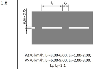 Ҳар бир чизиқ узунлиги улар орасидаги масофадан уч баробар катта бўлган узуқ-узуқ чизиқ нимани билдиради?